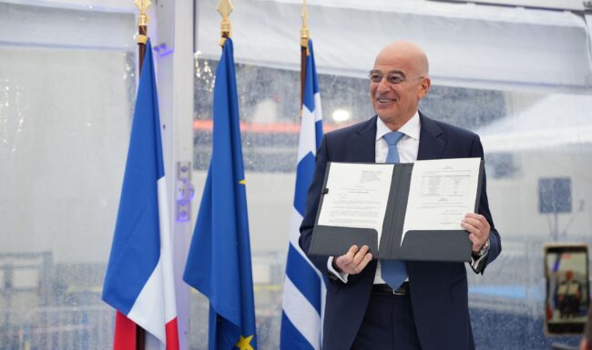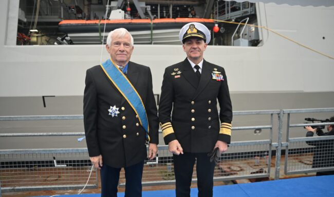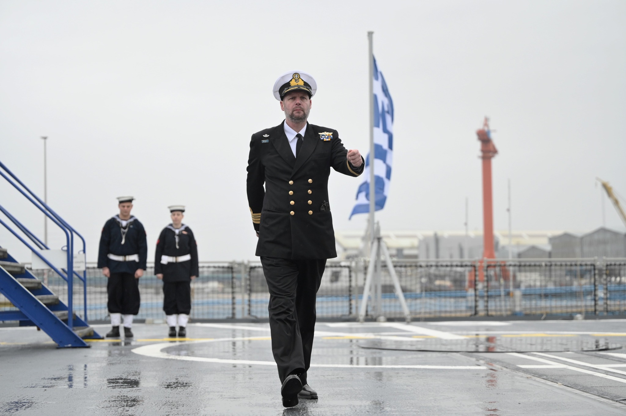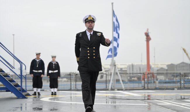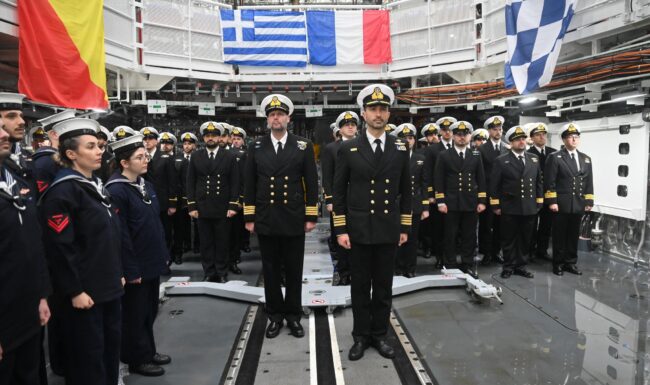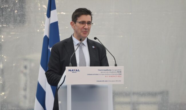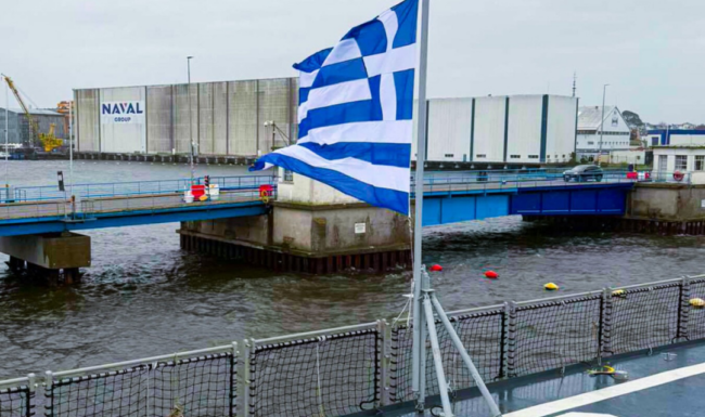 The official naming ceremony and the raising of the Greek flag on HS “KIMON” took place in Lorient, France, on 18 December 2025, in the presence of the Minister of National Defence of Greece, Mr Nikos Dendias, the CEO of Naval Group, Mr Pierre-Eric Pommellet and the ship’s sponsor, Admiral (Hon.) Panagiotis Laskaridis, whose contributions we respectfully acknowledge.
